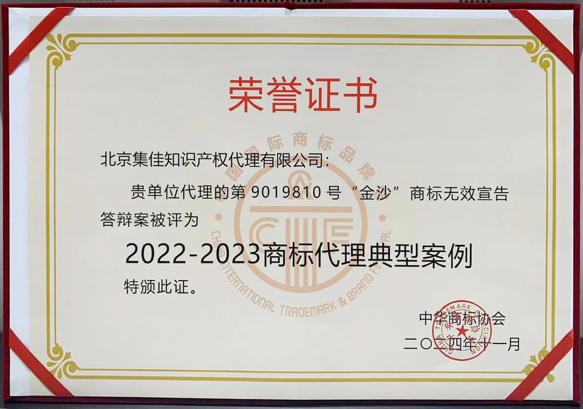 2024年11月24日下午,在商标节经典论坛之一的商标典型案例评析会议上,米兰体育官网代理的“金沙”商标权无效宣告答辩案入选“2022-2023商标代理典型案例”。